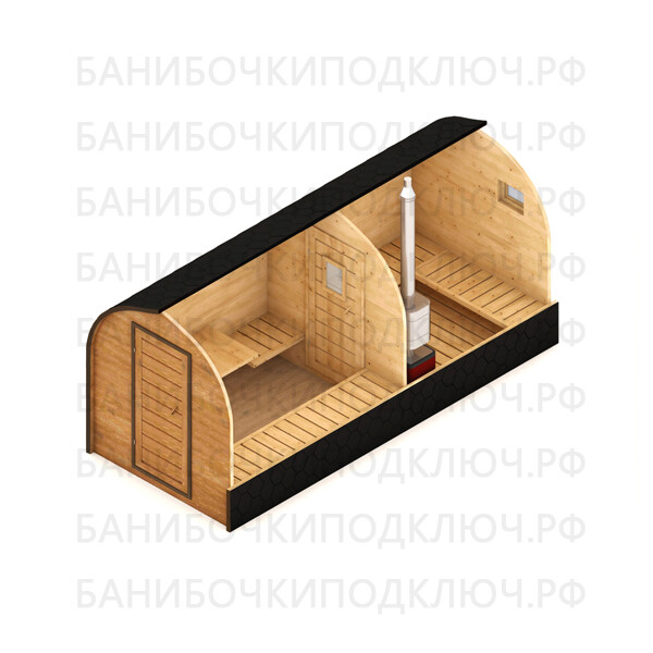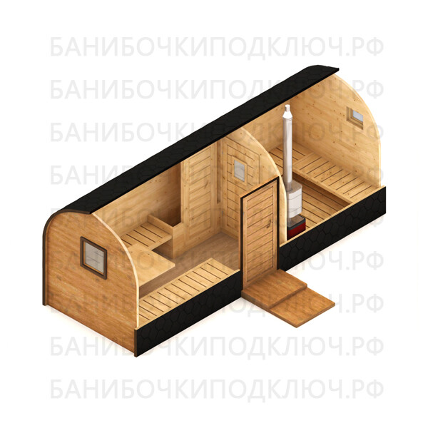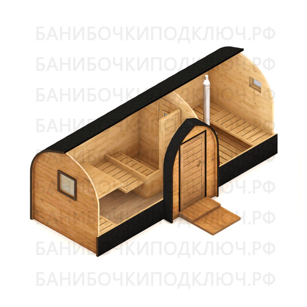 Баня Викинг 6 x 2,2 м с арочным входом и проходной мойкой