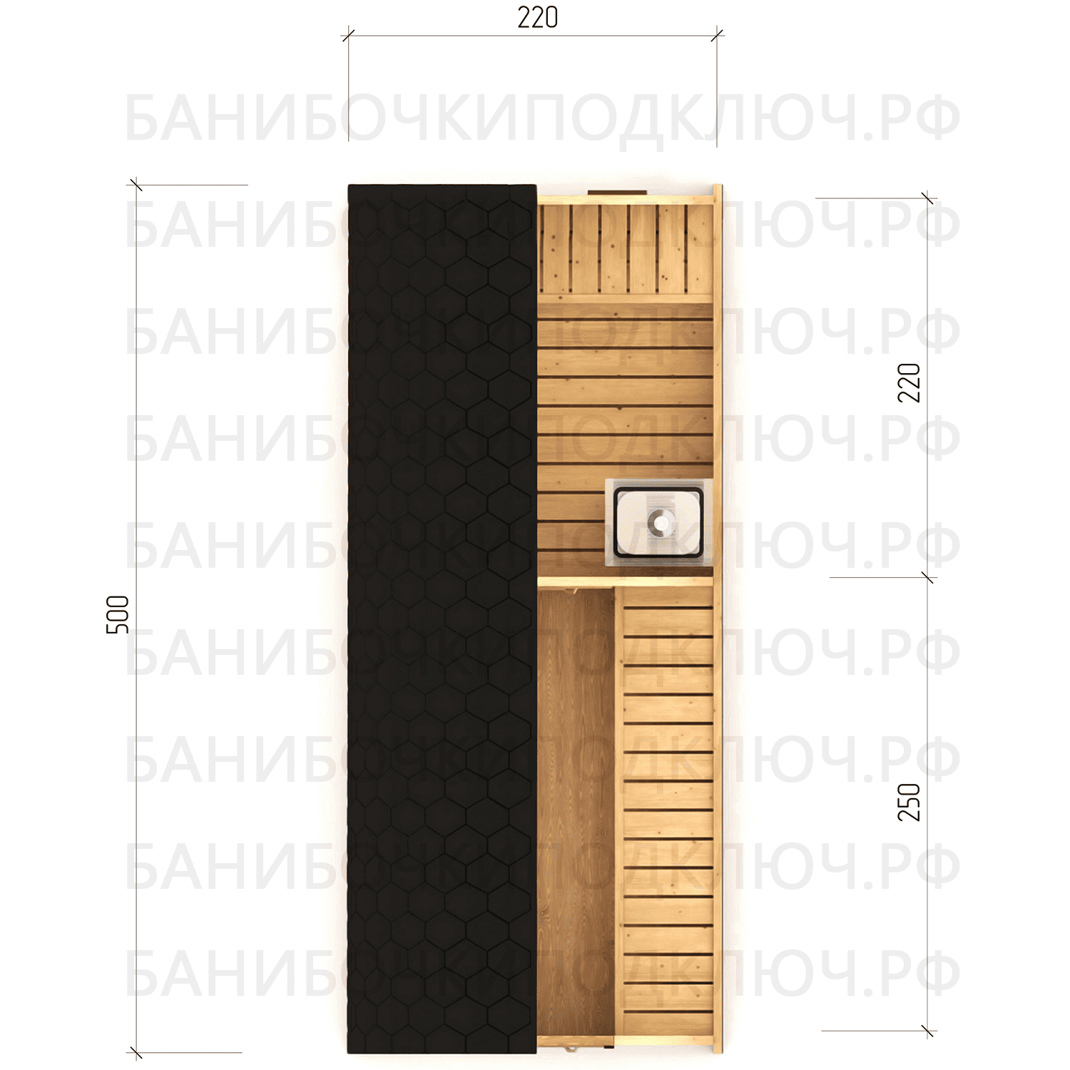 парилка - 220 см, мойка - 110 см, предбанник - 130 см